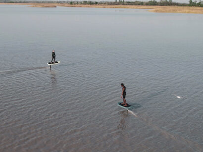 Das Besondere: Schon bei niedriger Geschwindigkeit hebt das Board aus dem Wasser ab, und du schwebst schwerelos über die Wasseroberfläche.