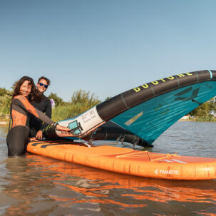 Auf einem stabilen Windsurf- oder SUP-Board setzt du das Gelernte um und spürst zum ersten Mal, wie der Wind dich übers Wasser zieht. Schritt für Schritt übst du Fahren, einfache Manöver und gewinnst Sicherheit – dein Einstieg ins Wingfoilen beginnt!